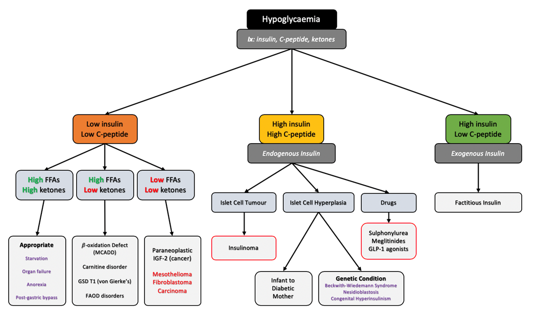 Summarise the causes of hypoglycaemia.