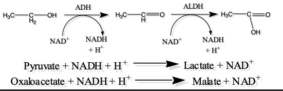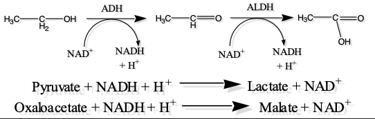 metabolic acidosis d/t lactic acidosis, which is d/t accmulating lactate from impaired conversion to pyruvate