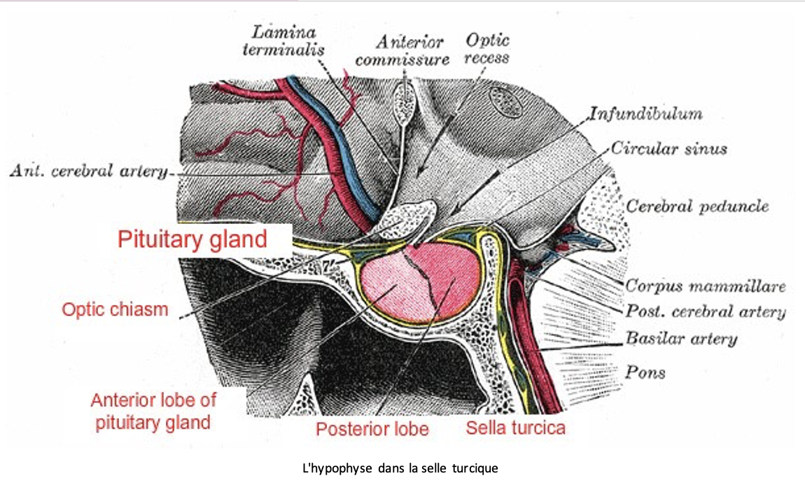 Hypophyse tres bien protégé dans une coquille d’os (selle turcique)