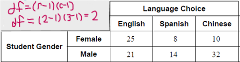 df=(#Rows - 1) (#Columns-1)