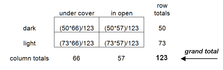 (Row total * Column Total)/Grand Total