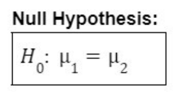 What is the null hypothesis for a t-test for two means?