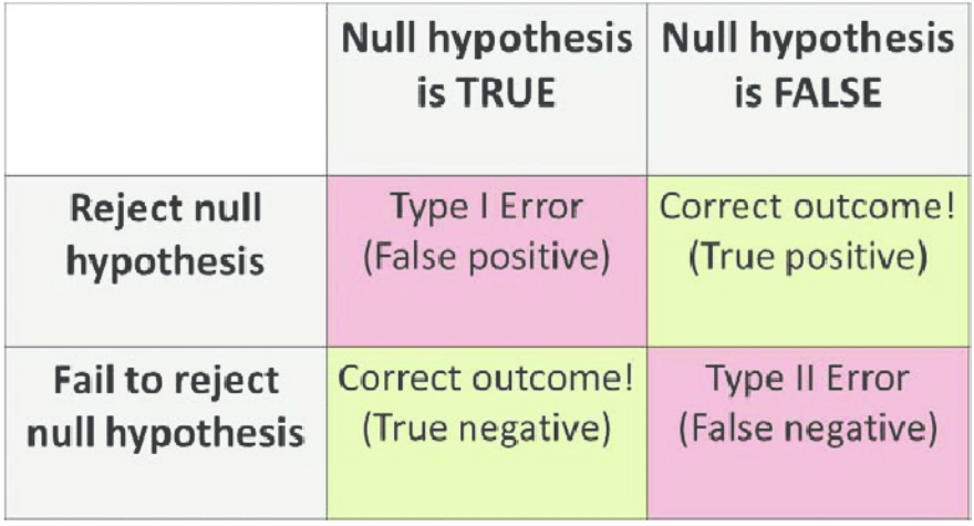 Type 1 and Type 2 error chart