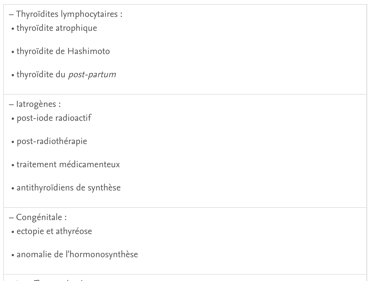 2 types atteintes donnant une hypothyroidie ?