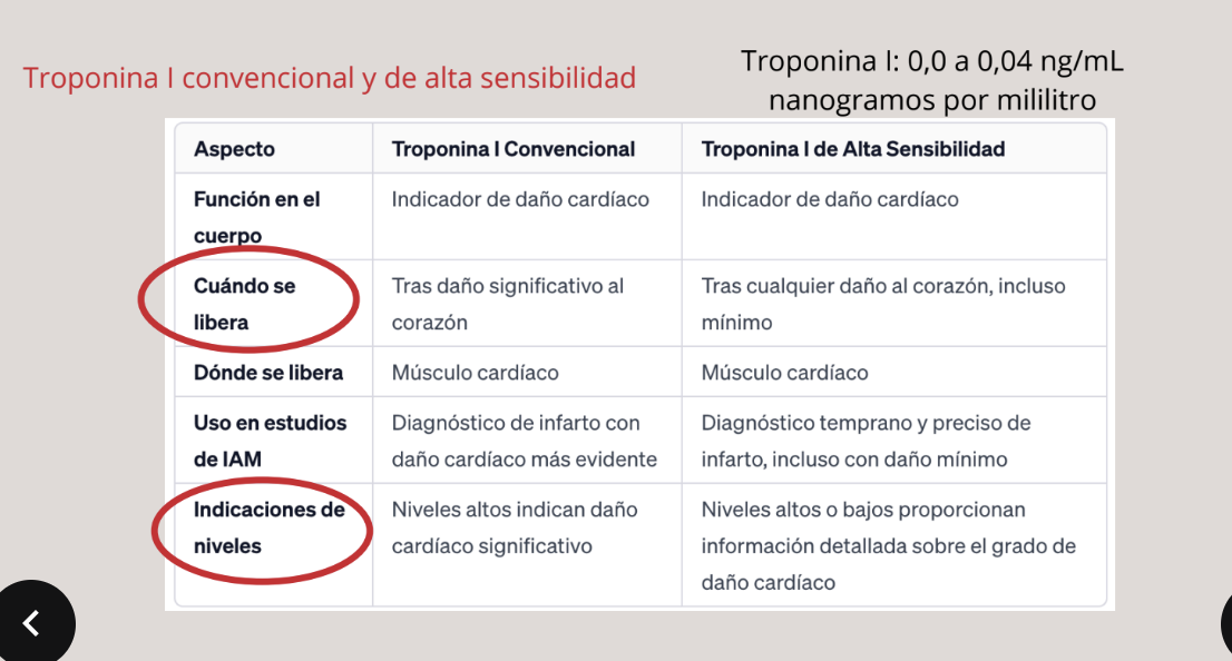 * Niveles elevados = daño cardíaco.