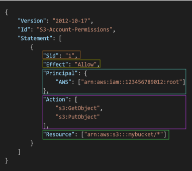 - Version: policy language version, always include “2012-10-17”