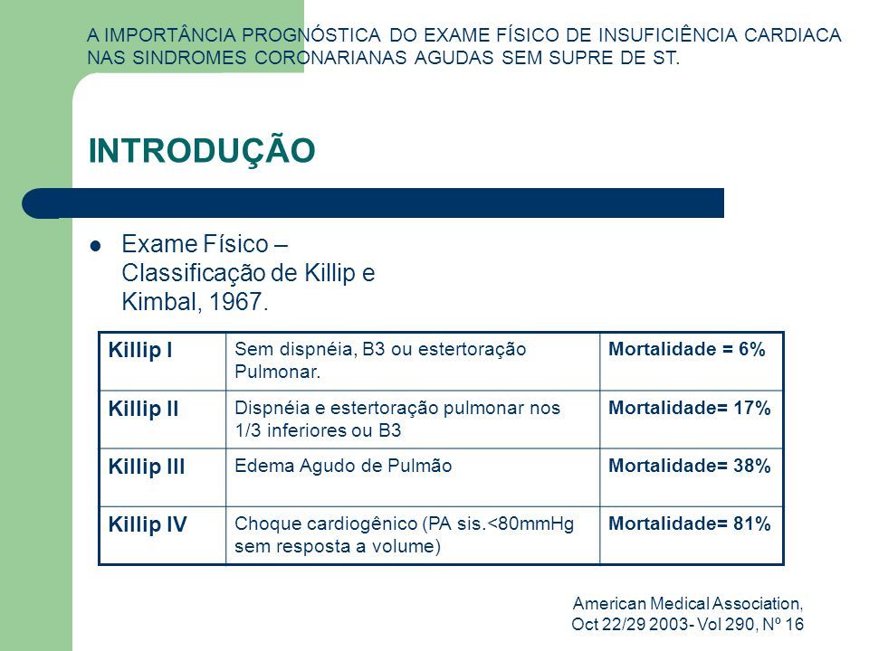 Como se dá a classificação de Killip?