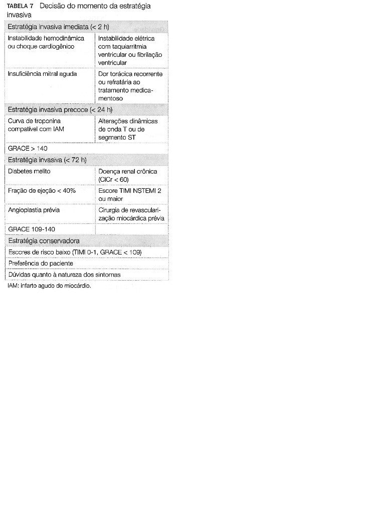 Se após os medicamentos iniciais o pct permanecer com quadro de dor torácica típica ou equivalentes –> FAZER ANGIOCORONARIOGRAFIA EM 2 HORAS, independente dos achados do ECG e dos marcadores de necrose miocárdica;