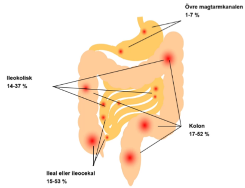 Vad kan man säga om inflammationen vid Crohns gällande lokal utbredning?