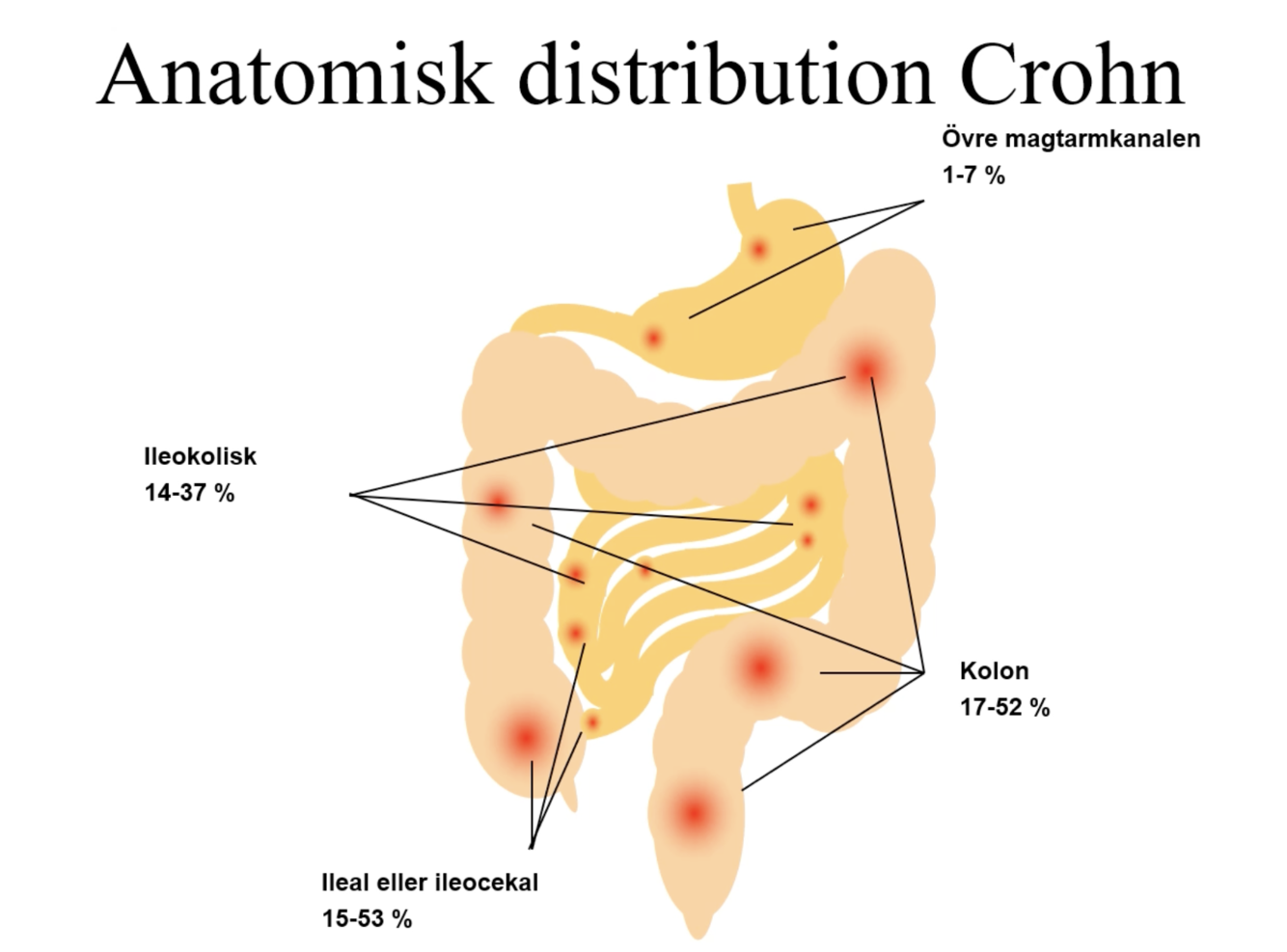 Ileala/ileocekala crohns är den klassiska versionen och sitter i caekum och terminala ileum, hälften av patienterna brukar ha denna. Det blir dock mer och mer vanligt med att sjukdomen sätter sig i kolon. Vilke version a crohns är värst att drabbas av?