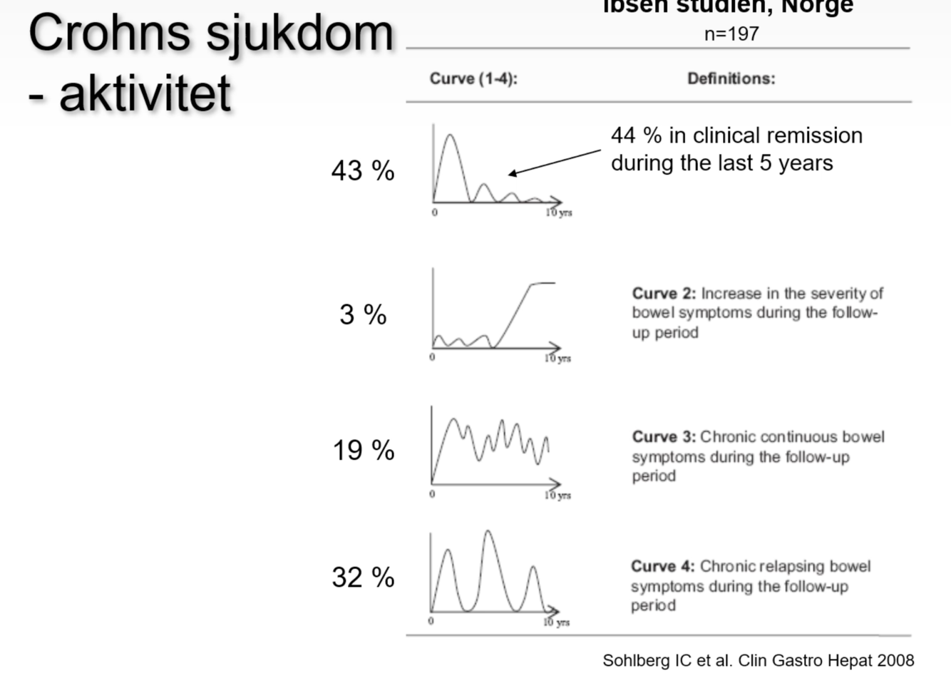 Crohns har många olika aktivitets förlopp, beskriv några?