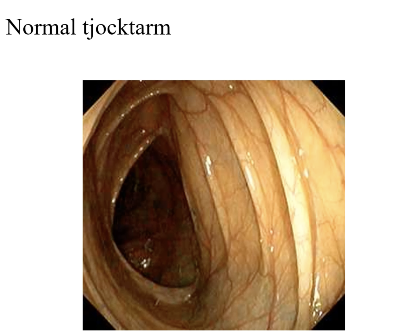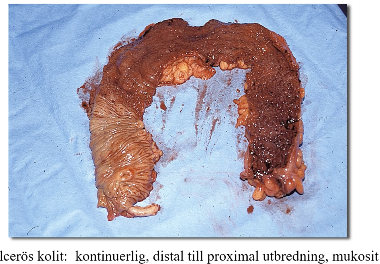 Bilden visar hur UC kan se ut, man ser att den är värst rektalt och gradvis bättre mot caecum. TIlls man ser en VÄLDIGT skarp gräns som man inte riktigt vet varför.