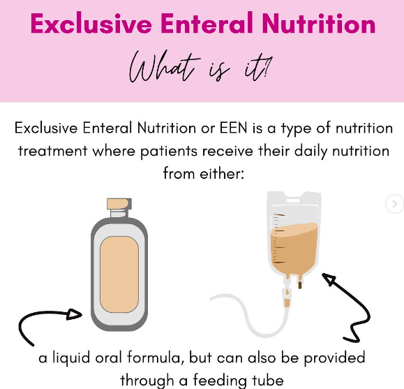 - a course of exclusive enteral nutrition (EEN) can be considered over an 8 week period