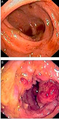 Descricbe characteristic findings of colonoscopy in UC patients [4]