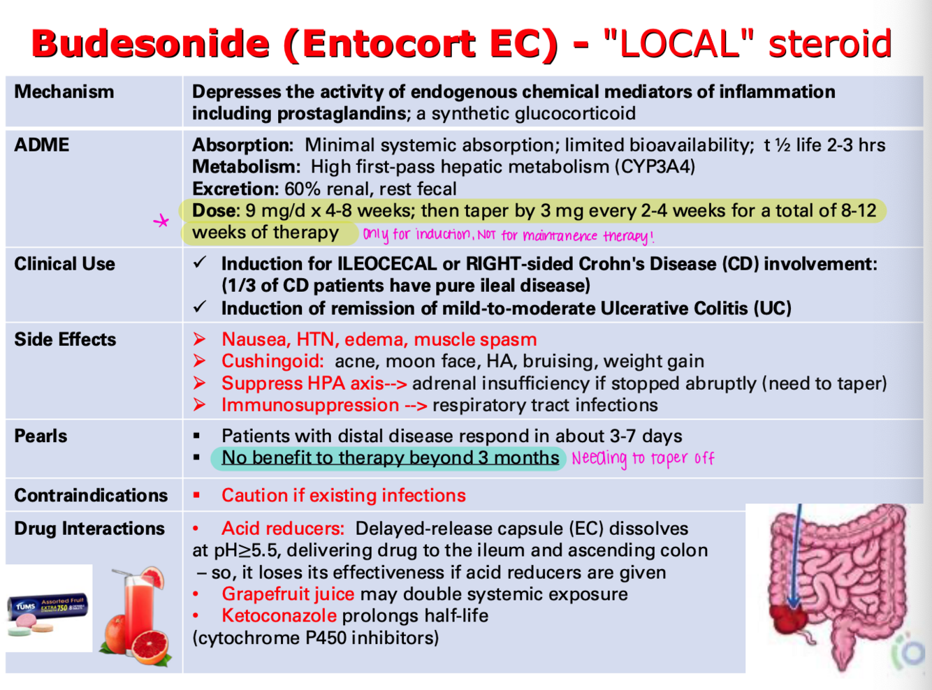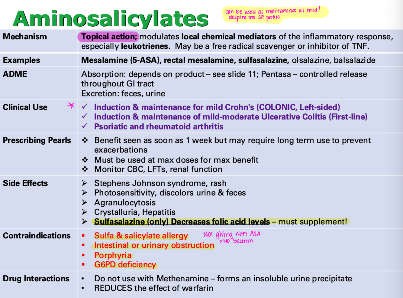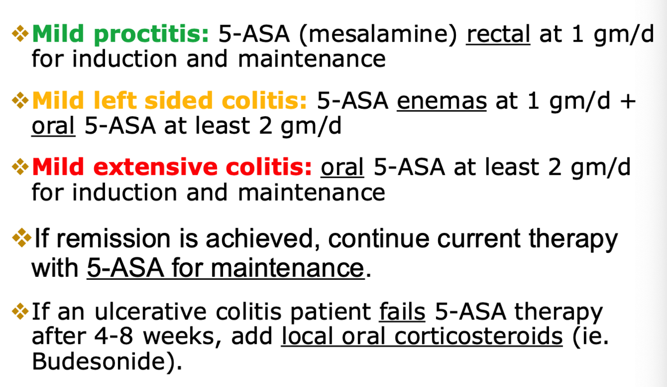 induction of remission in mild UC: mild proctits, mild left sided colitis, mild extensive colitis