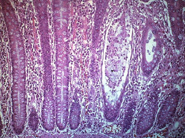 crypt abcesses in ACUTE (INFECTIOUS) COLITIS