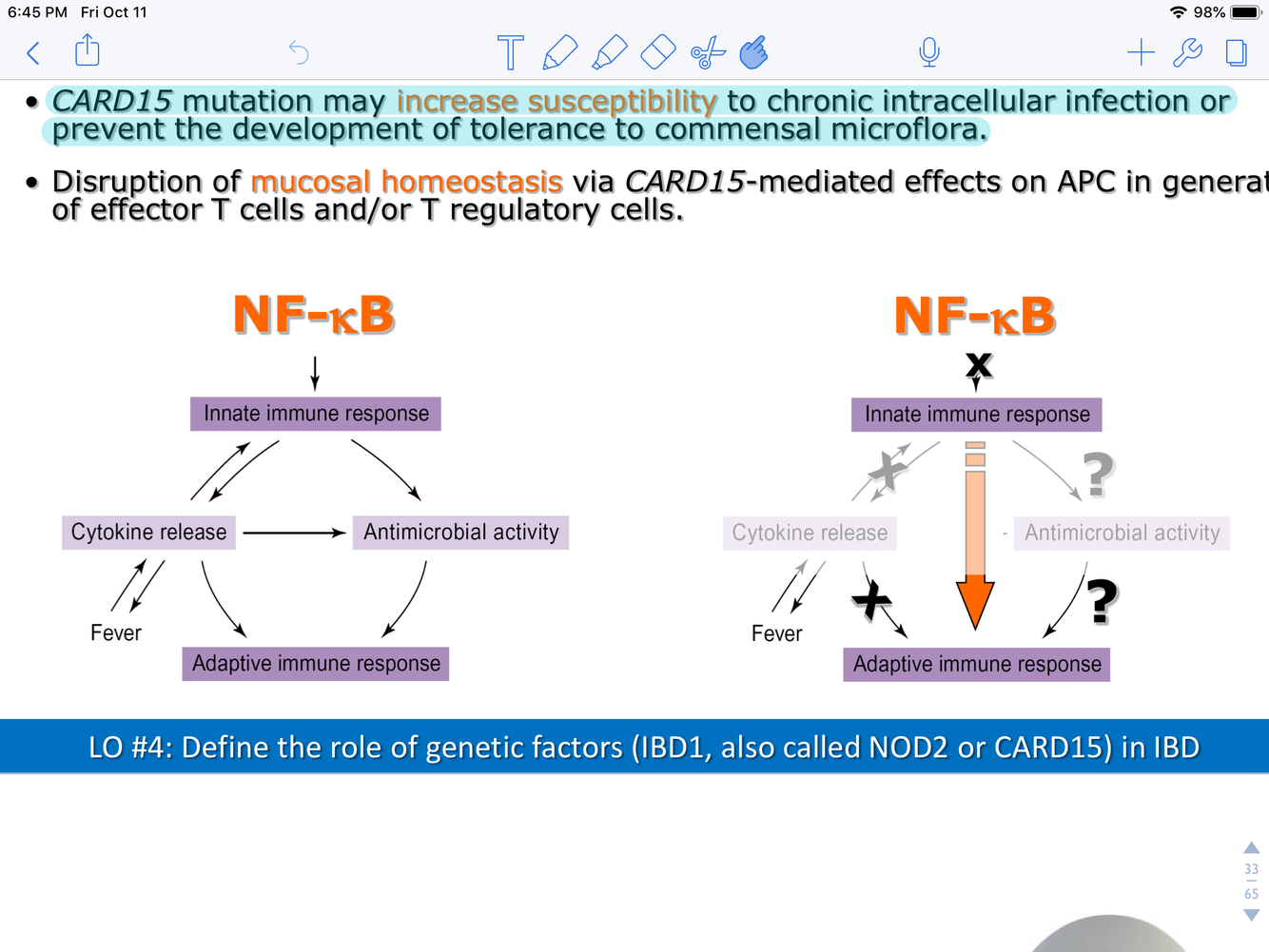 CARD15 mutation may increase susceptibility to chronic intracellular infection or prevent the development of tolerance to commensal microflora