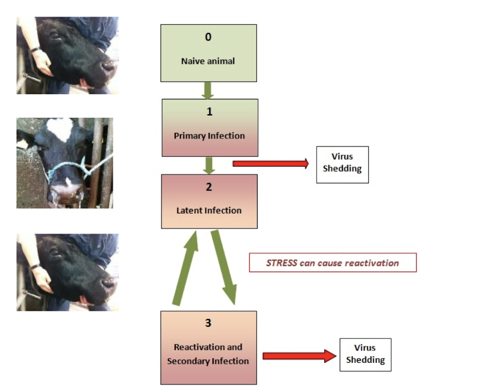 The latency/reactivation cycle has a deep epidemiological impact since it is responsible for the maintenance of BoHV-1 in a cattle herd