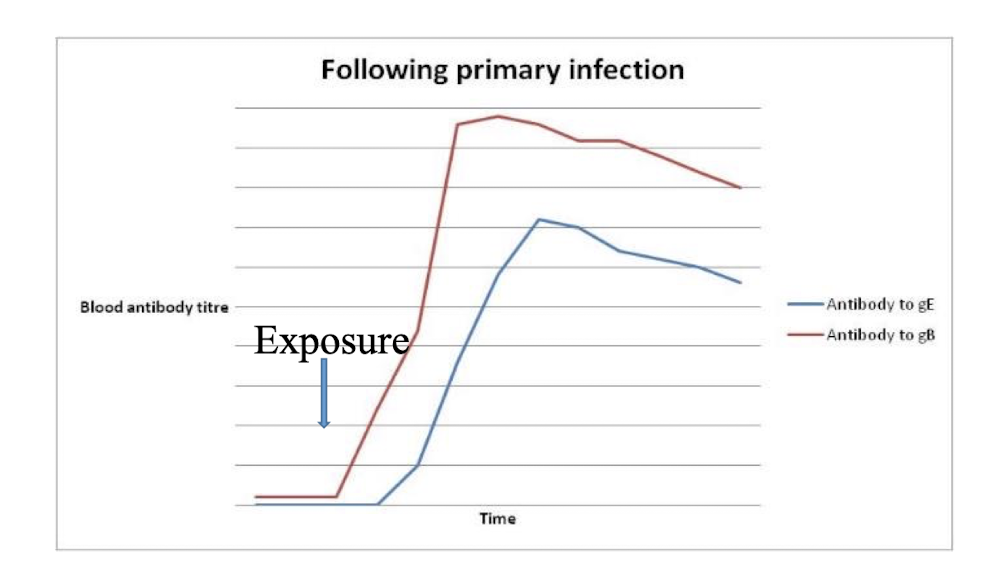 Can test for antibodies for gE or gB