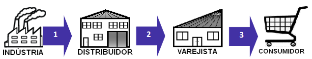 Uma indústria vende seus produtos pelo preço de R$ 100,00 ao distribuidor, que, por sua vez, revende ao estabelecimento varejista por R$ 200,00.