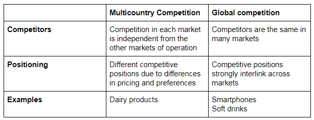 How do multicountry competition and global competition differ?