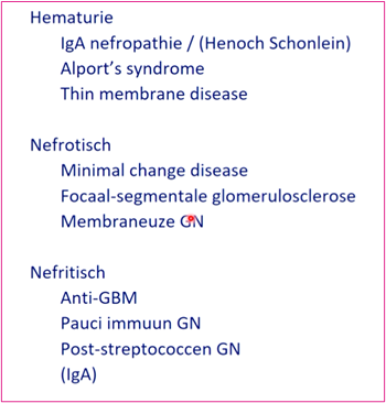 Selectieve proteïnurie: alleen maar albumine in de urine (bij een nefrotisch syndroom).