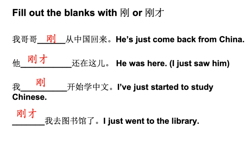 刚才 can be used in a negative sentence with “不/没”, 刚 cannot.