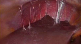 Note Fitz-Hugh-Curtis adhesions over the liver, typical of PID.