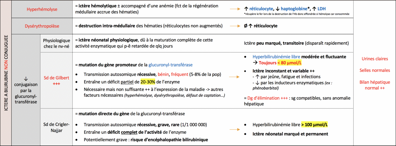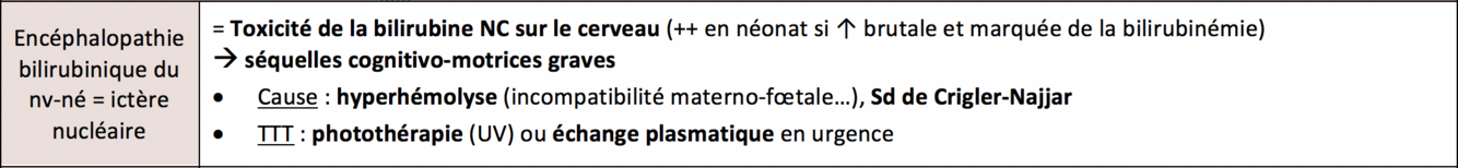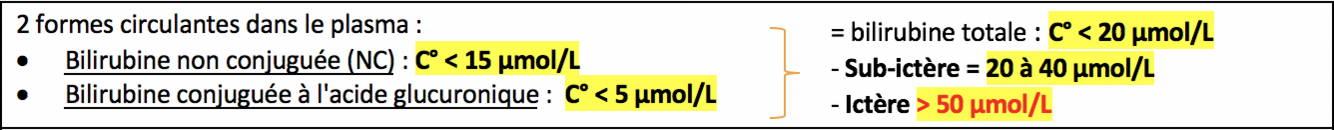 Ictère à bilirubine NC = bilirubine NC > 70% de la bilirubinémie totale