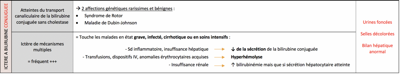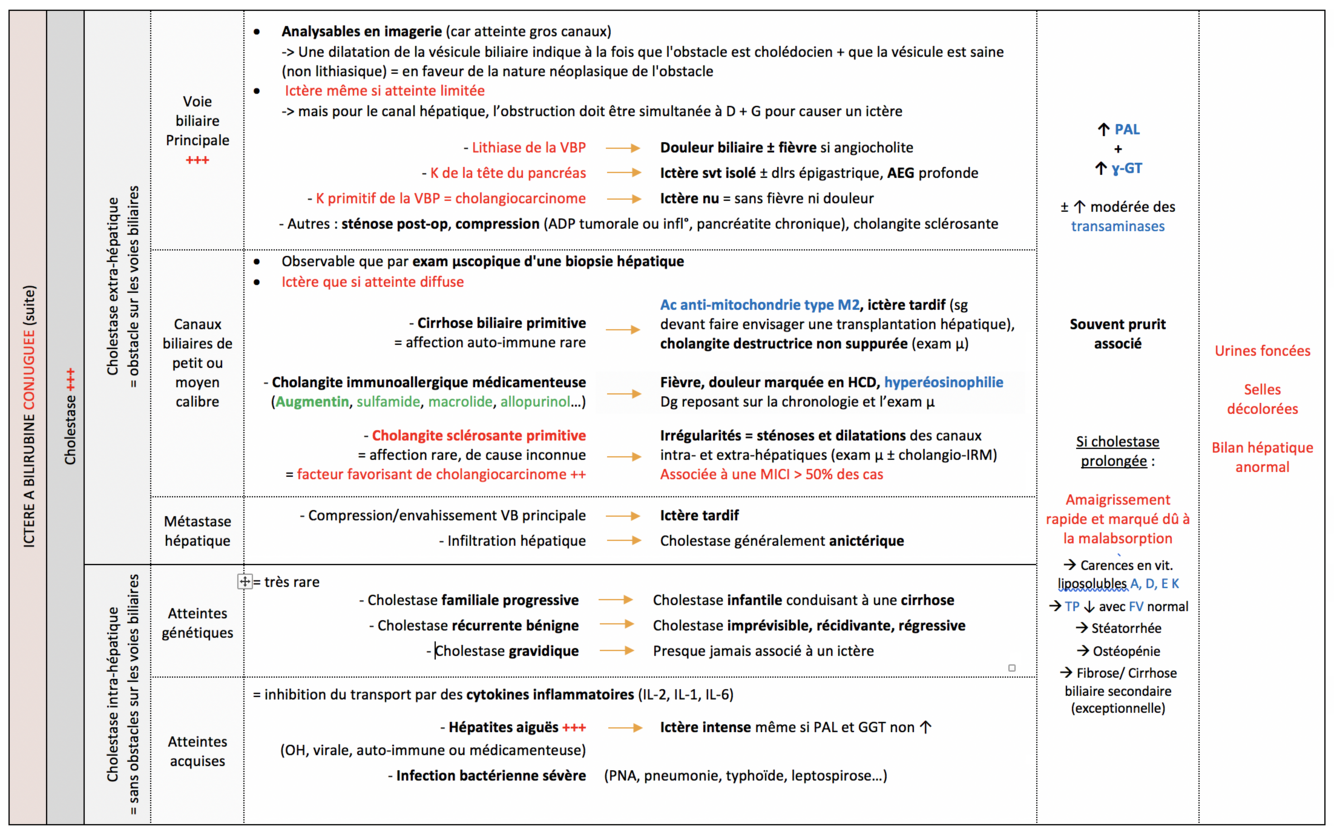 Ictère à bilirubine conjuguée cholestasique : étiologies