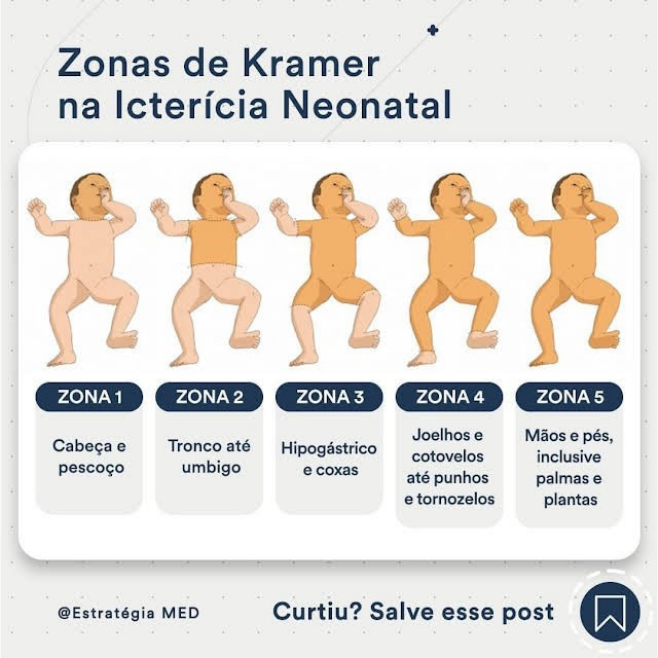 | ZONA 3 | Hipogástrio e coxas | Bilirrubina perto de 12mg/dL |