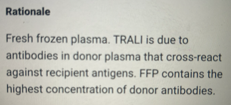 Which blood product is most strongly associated with transfusion related acute lung injury (TRALI)?