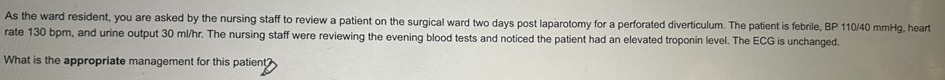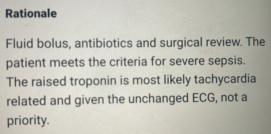 = D: Fluid bolus, appropriate antibiotics and surgical review