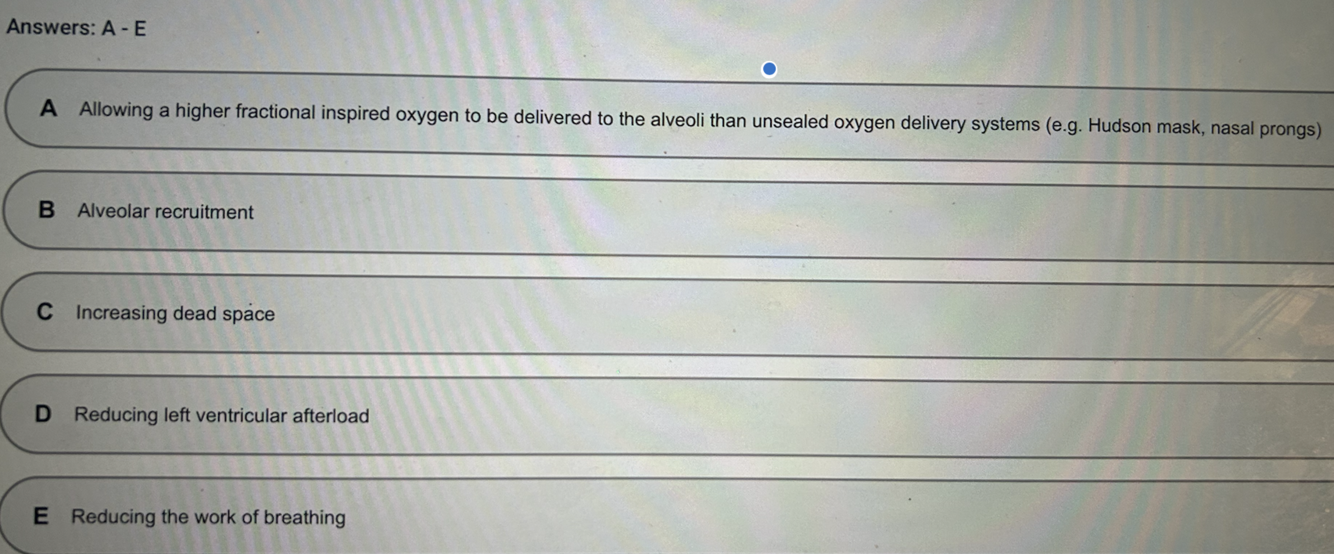 Increasing dead space causes increased CO2 not hypoxia. NIV causes a very small increase in dead space that is not significant. All the other answers are true.