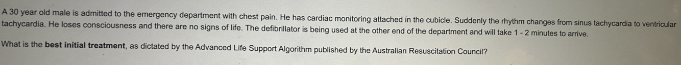 - They do not need CPR as they have regained consciousness. Isoprenaline could also be used here but was not an option.