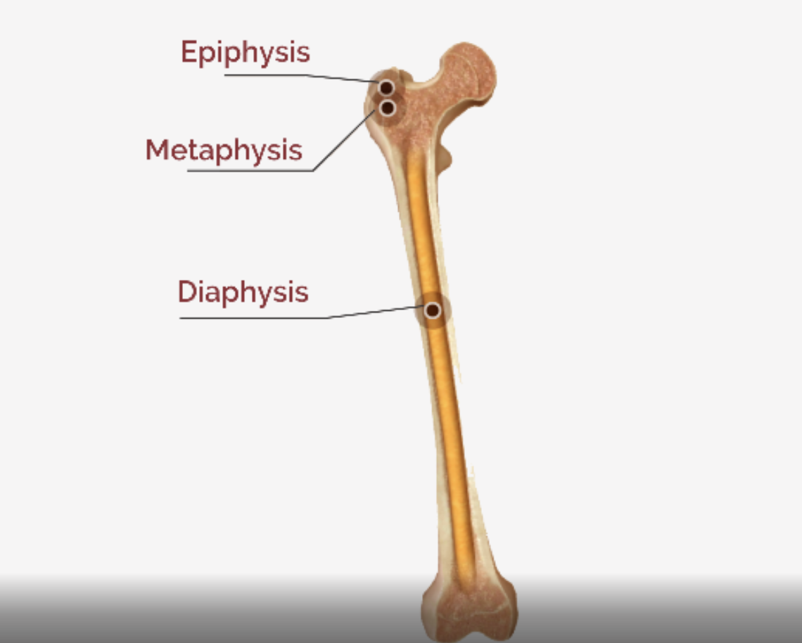 (Femur, humerus, tibia, radius, maxilla)