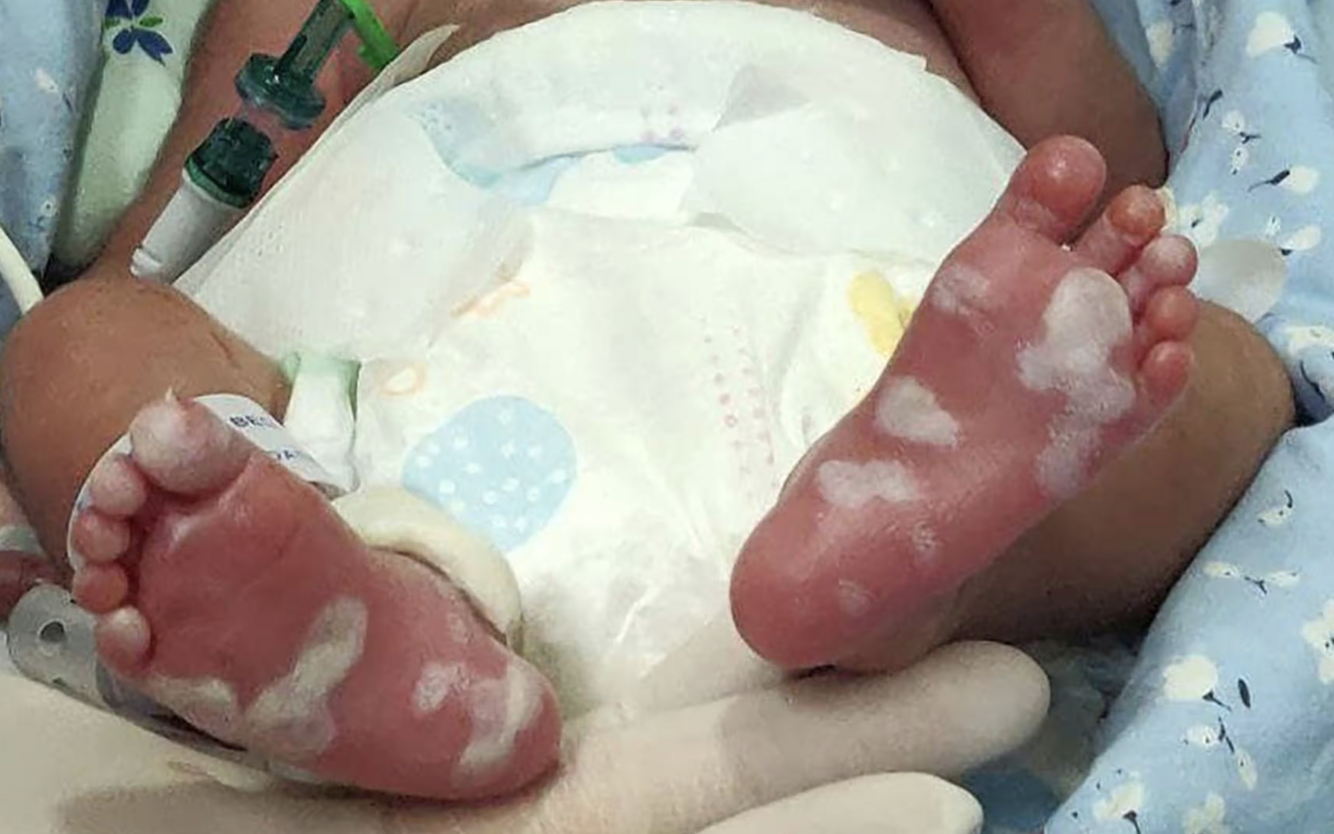 What kind of rash do you see in neonate with Syphilis?