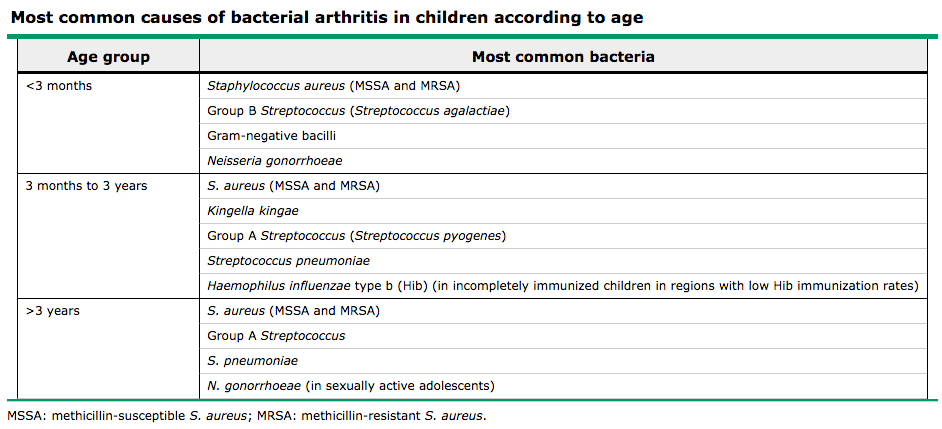 Up To Date Bacterial arthritis: Epidemiology, pathogenesis, and microbiology in infants and children