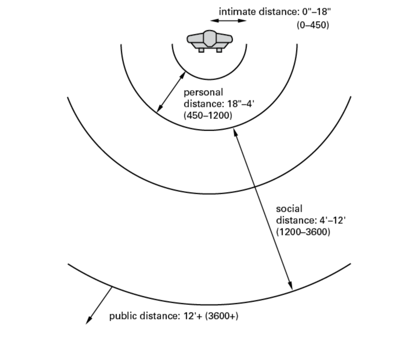 What are the (4) basic distances that can be used to study human behavior and serve as a guide for designing environments?