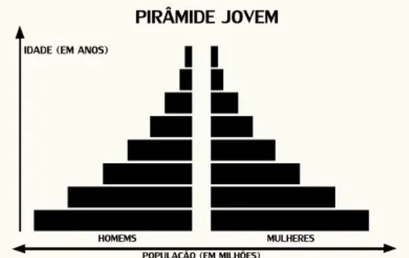 Quais as características do tipo de pirâmide populacional jovem?