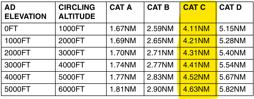 What is the minimum obstacle clearance for Cat C circling area?