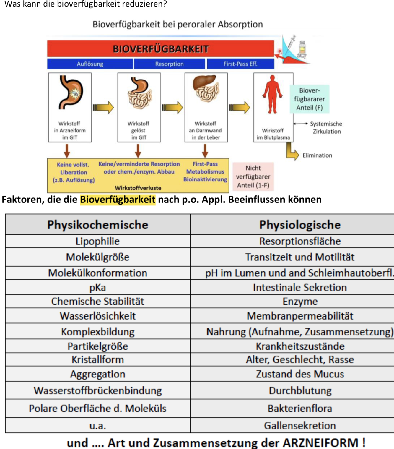 o Haupteinflussgrößen (auf die Bioverfügbarkeit)