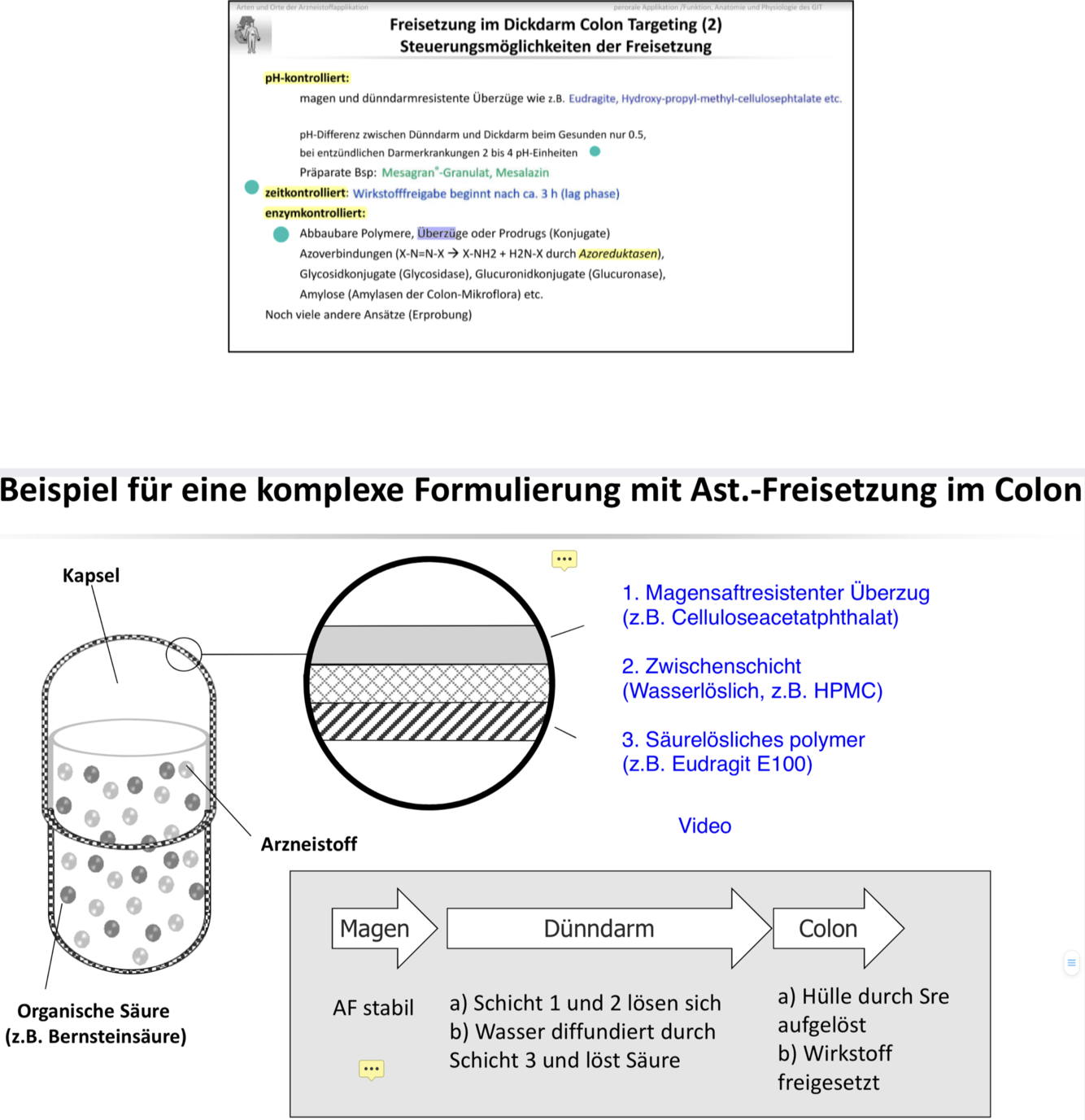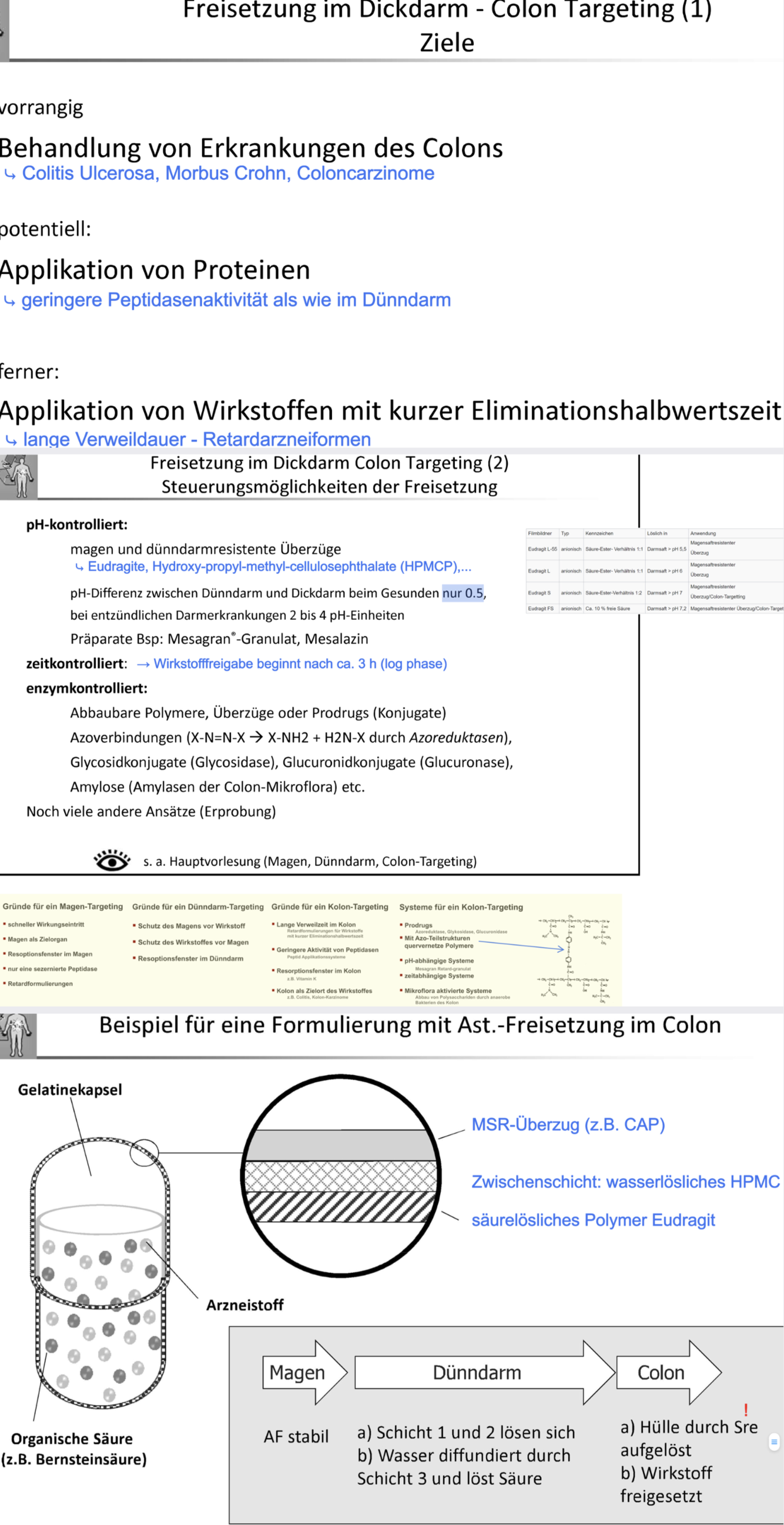 Kolon Targeting, welche Möglichkeiten& Funktionsweiße erklären? Dickdarm als Resorptionsort?