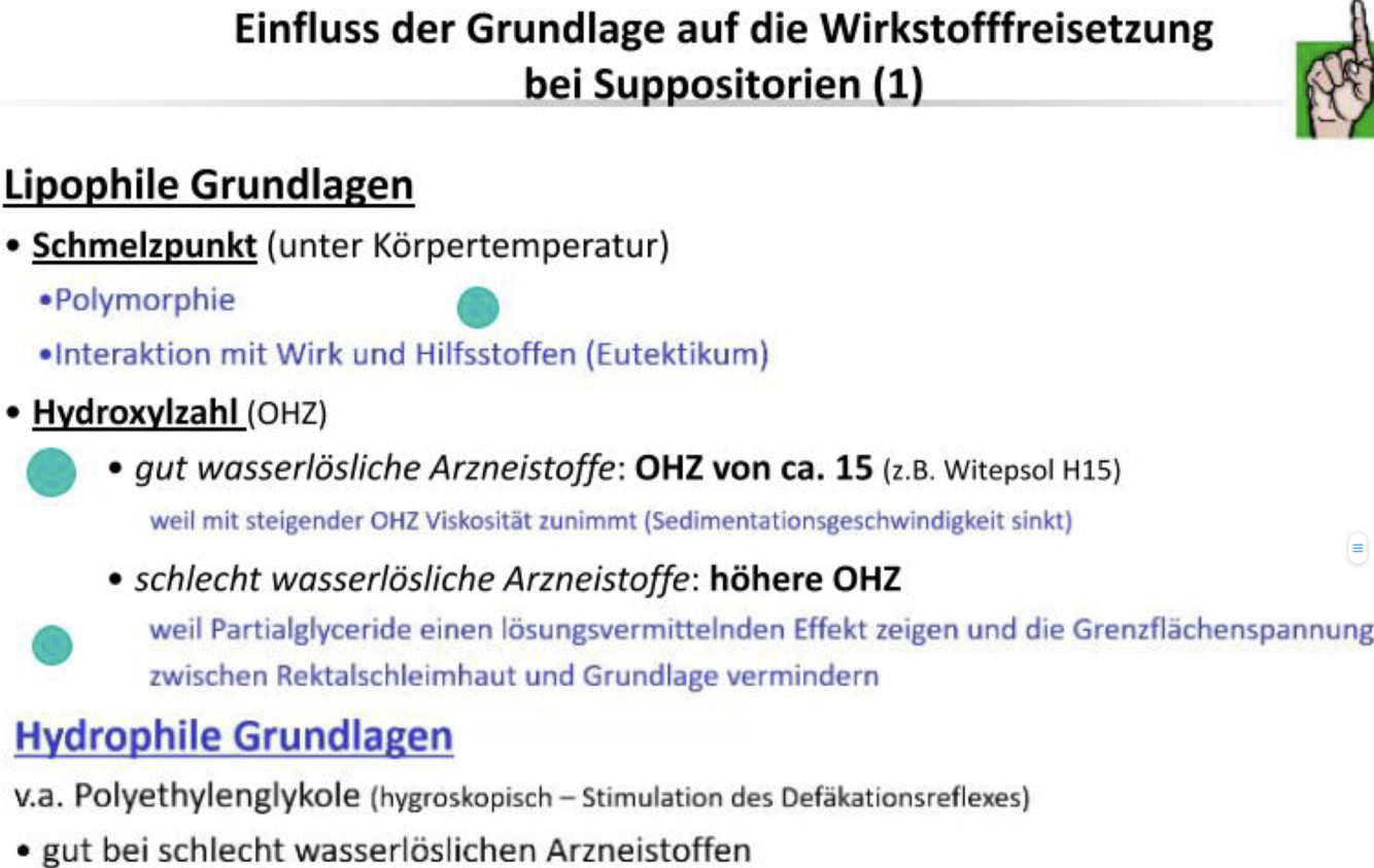 o Einfluss der Grundlage (auf die Wirkstofffreisetzung aus Suppositorien)