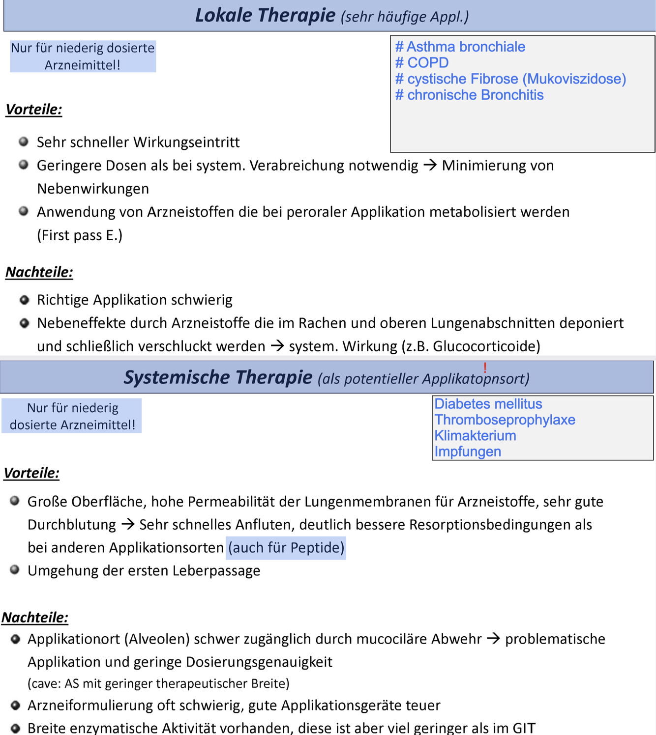 Vor- und Nachteile pulmonale Applikation