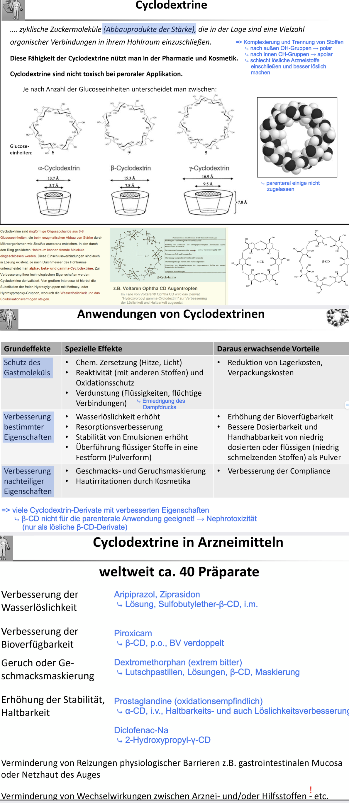 Was sind Cyclotextrine und deren Vor u Nachteile. Nennen Sie möglichst Beispiele