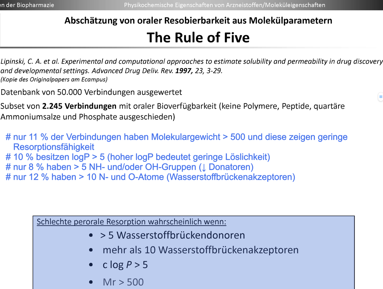 The Rule of Five von –> Lipinski