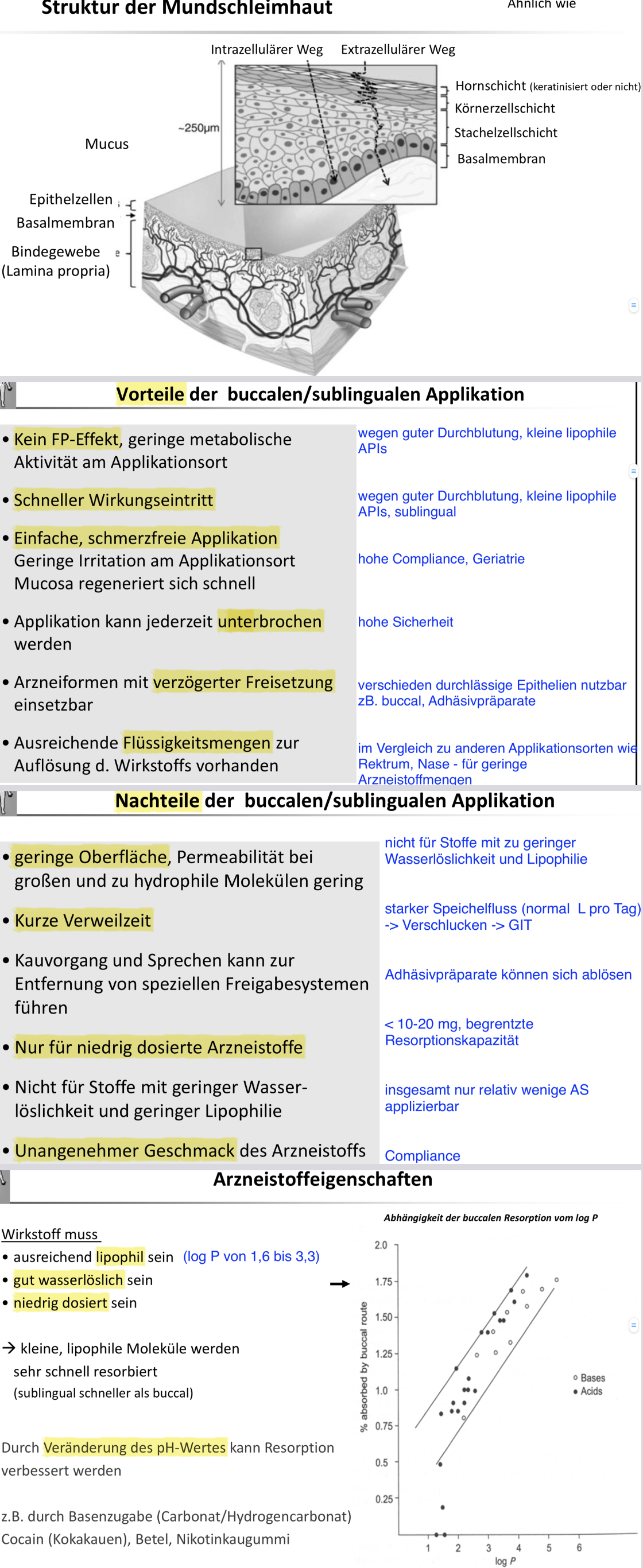 Wasserlöslichkeit muss gut sein & auch lipophil log p 1,6-3,3