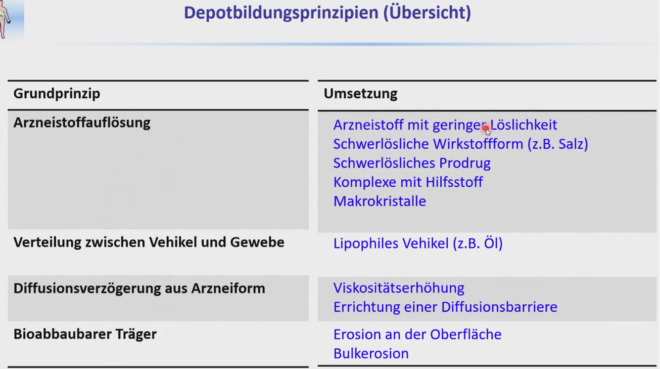Depotpräperate lipophilie extrem wicht für die Steuerung der WSt-freisetzung –> ng