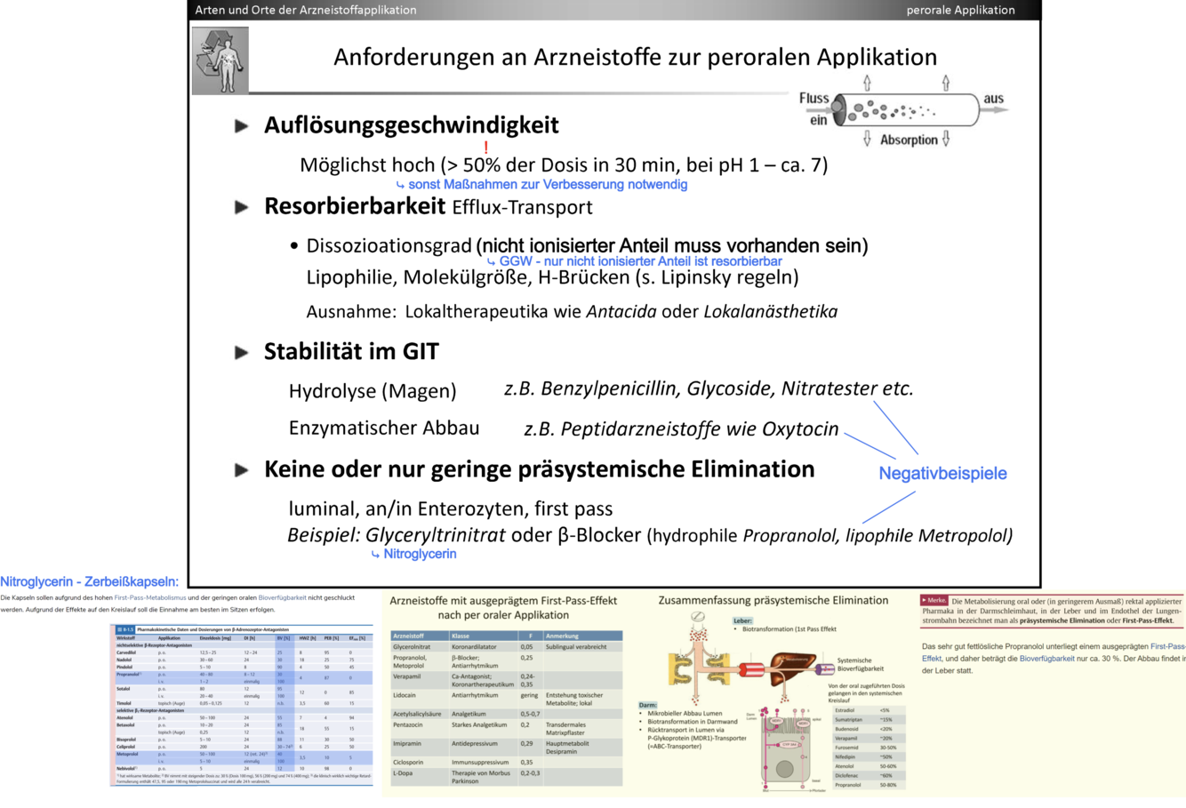 First Pass Effekt –> Metabolisierung des WSt bei der ersten Passage durch die Leber –> kann zu inaktiven Metaboliten fürhen